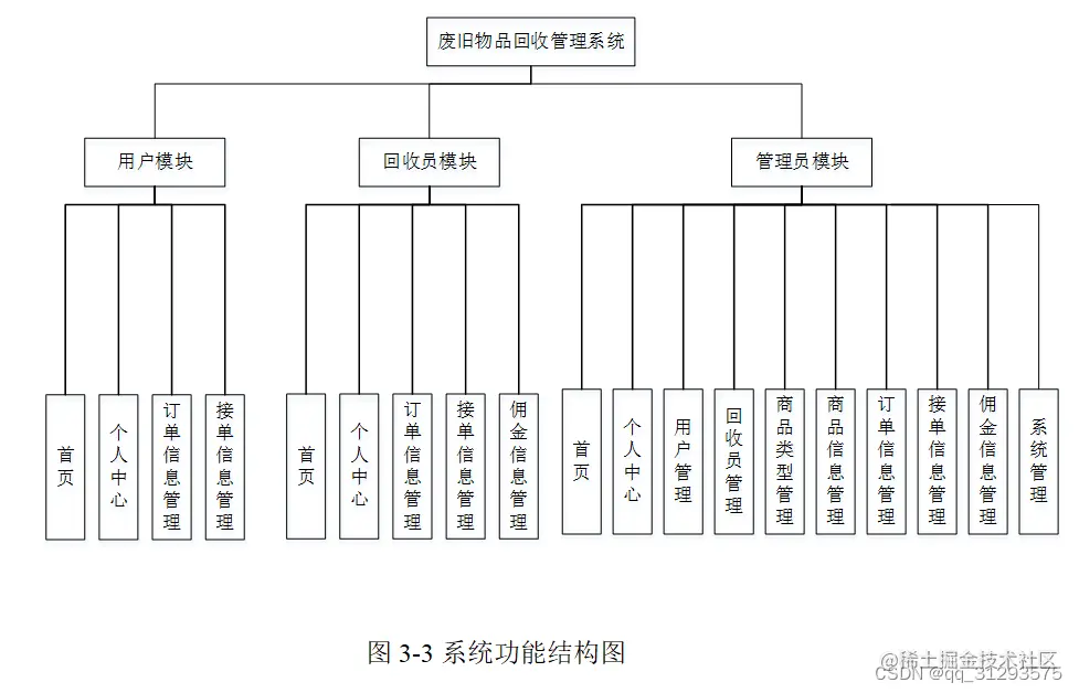 本系统可以分为:用户使用的功能、回收员使用的功能、管理员进行管理的功能。
