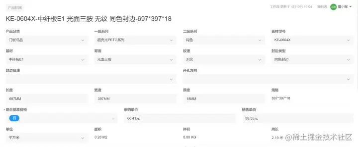 建档数据中基材、面料、纹理、封边类型和尺寸都属于动态值。通过动态值的变化,自动触发工作流更新采购单价和销售单价。