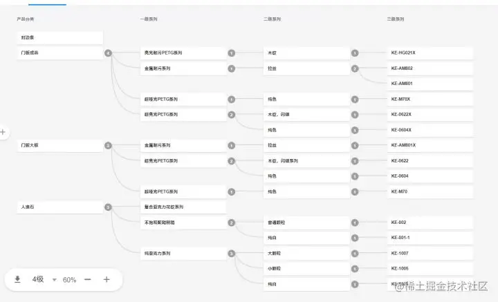 因为产品十分多元,所以我们需要一张表单来分类:通过一对多的模式,层层套娃来实现组合的闭环。如图:产品分类-一级系列-二级系列-三级系列,目的是为了通过分类实现报价的归属。