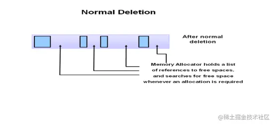 简单删除(标记清除):它的过程很简单,我们只需要删除未被引用的对象即可。但是,后续给新对象分配内存就会变得很困难了,因为可用空间被分割成了一块块碎片。