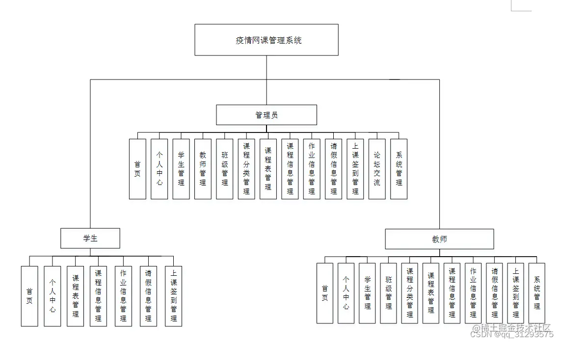 本网课管理系统主要功能是课程的学习、作业的提交、签到管理、答疑管理等,为了完成这些功能的实现必然需要对用户角色进行划分。