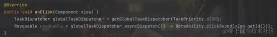 如下图,当监听到点击事件发生的时候,统一调用DataAbility.clickSound(),为防止阻塞,我们使用异步调用的方式。
