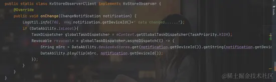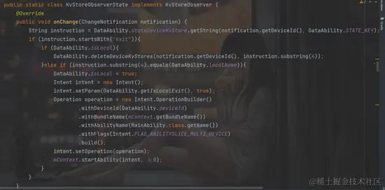值得一提的是,分布式状态数据库是所有设备初始化的时候都通过DataAbility.STATE_KEY来监听同一个分布式状态数据库DeviceKvStore,而分布式音乐演奏数据库则是每个设备都会根据自己唯一的DataAbility.storeId来创建分布式音乐演奏数据库DeviceKvStore,也就是说会有多个分布式音乐演奏数据库。