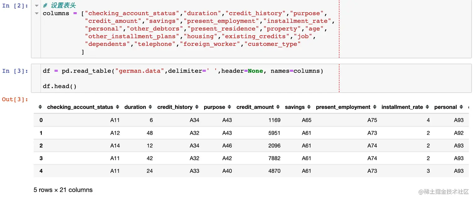 下载的数据没有表头,网上搜索到对应英文表头,生成DataFrame: