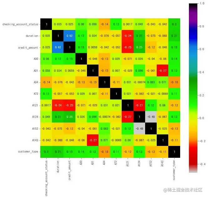 - 筛选变量:相关系数是用来检测两个连续型变量之间线性相关的程度;特征变量和最终因变量的关系不一定线性相关。本文中观察到相关系数都很低,似乎佐证了这点。后续考虑通过其他方法来筛选变量进行建模