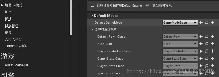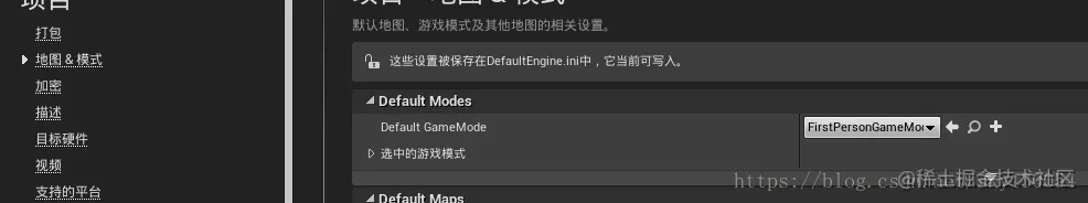 在“项目设置”中“Map&Mode”中可设置默认游戏模式(当世界设置中为“None”时)