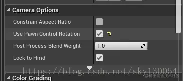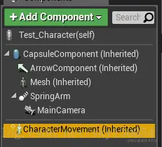 然后添加一个弹簧手臂“SpringArm”,把摄像机放入它下面,可使摄像机移动更加平滑,并取消摄像机的“Use Pawn Control Rotation”,勾选“SpringArm”的“Use Pawn Control Rotation”