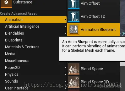 右键创建一个动画蓝图“Animatoin Blueprint”