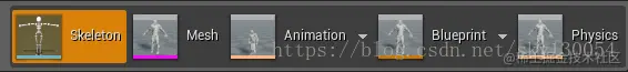 选中需要的骨骼创建一个动画蓝图,在动画蓝图中的右上角有不同选项卡