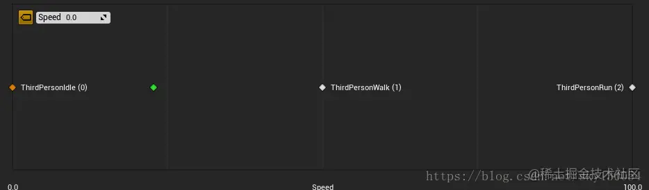 点击关键帧在左侧的细节面板改名为“Speed”,按住“Shift”可观察混合空间效果。