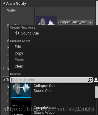 点击添加的音效,再到细节面板中选择需要的音效即可