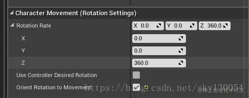 选择角色还无法根据方向正确的转向,还需要在该组件中将“Orient Rotation to Movement”勾选上