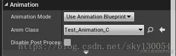 点击左侧组件中的“Mesh”,可看见“Animation”需要将为“Anim Class”设置动画蓝图才可使人物播放动画。