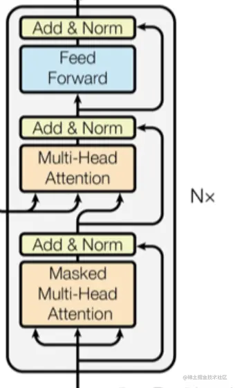 除了传入的参数稍微不同,其他的流程处理和Encoder一致,差别主要存在于MASK Attention 以及Cross Attention的区别