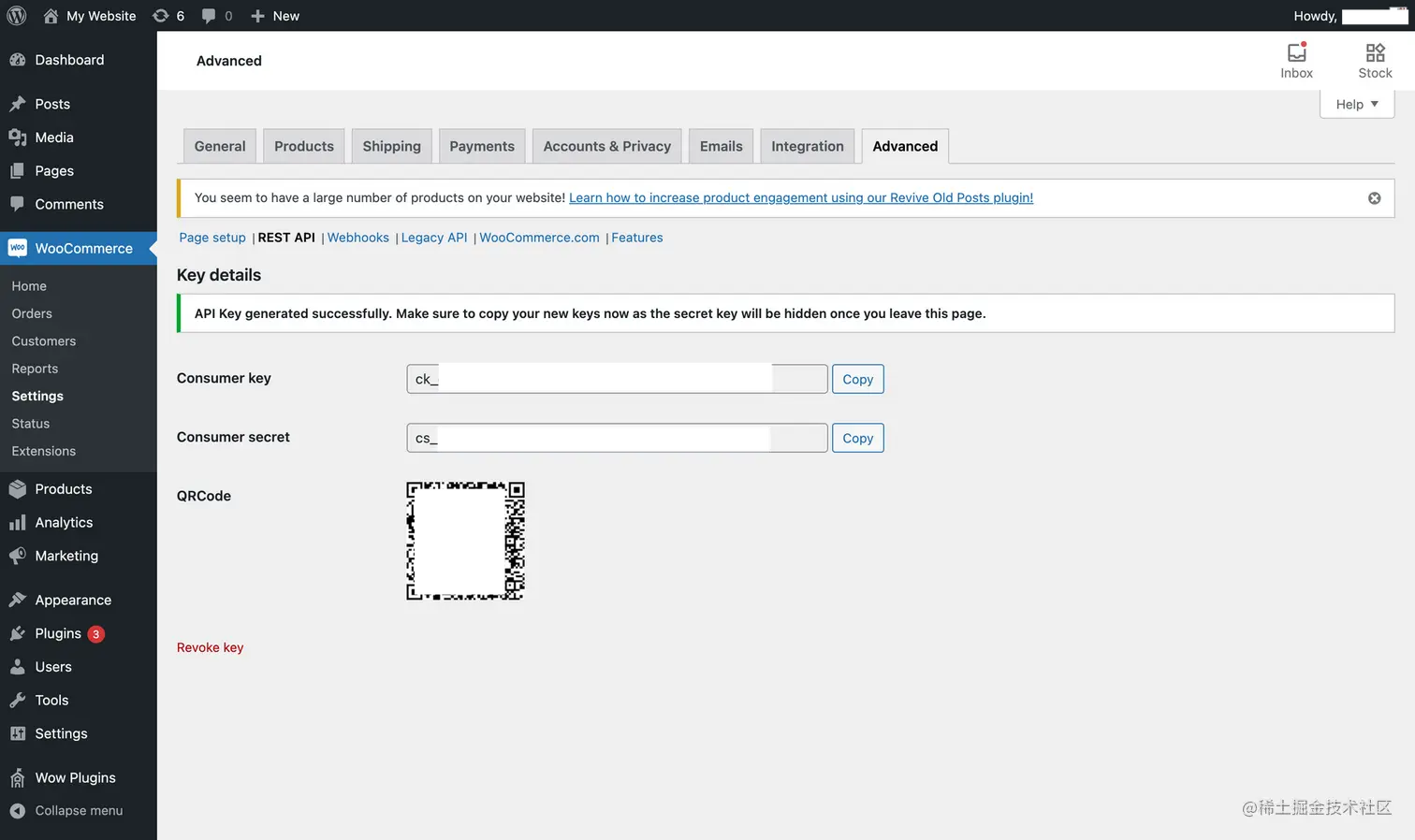 为了与WooCommerce API一起工作,我需要生成API的密钥来工作。你可以在WooCommerce官方文档中获得更多信息。