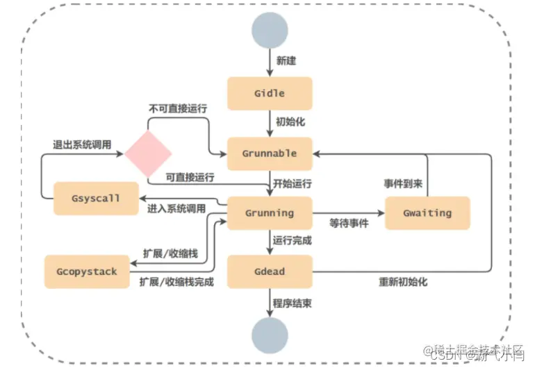 _Gcopystack // 栈复制中。G正在获取一个新的栈空间并把原来的内容复制过去(用于防止GC扫描)