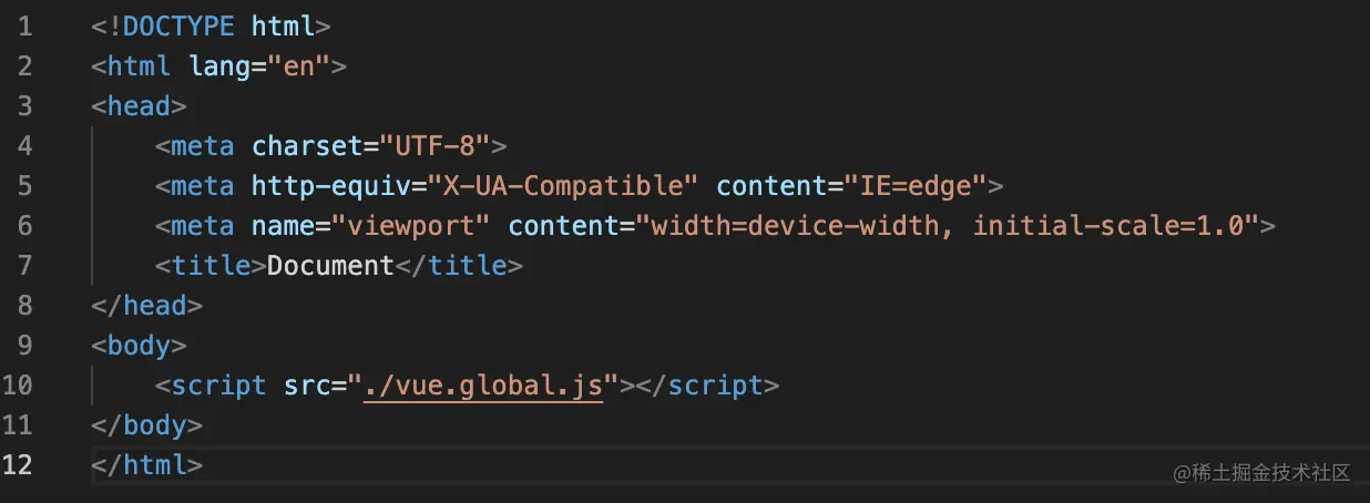 在dist新建一个index.html文件,并引入这个 vue.global.js 文件
