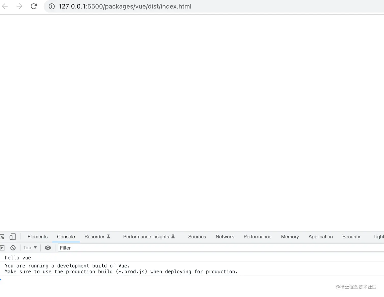 再在浏览器中打开 index.html 文件,控制台里就会打印 hello vue