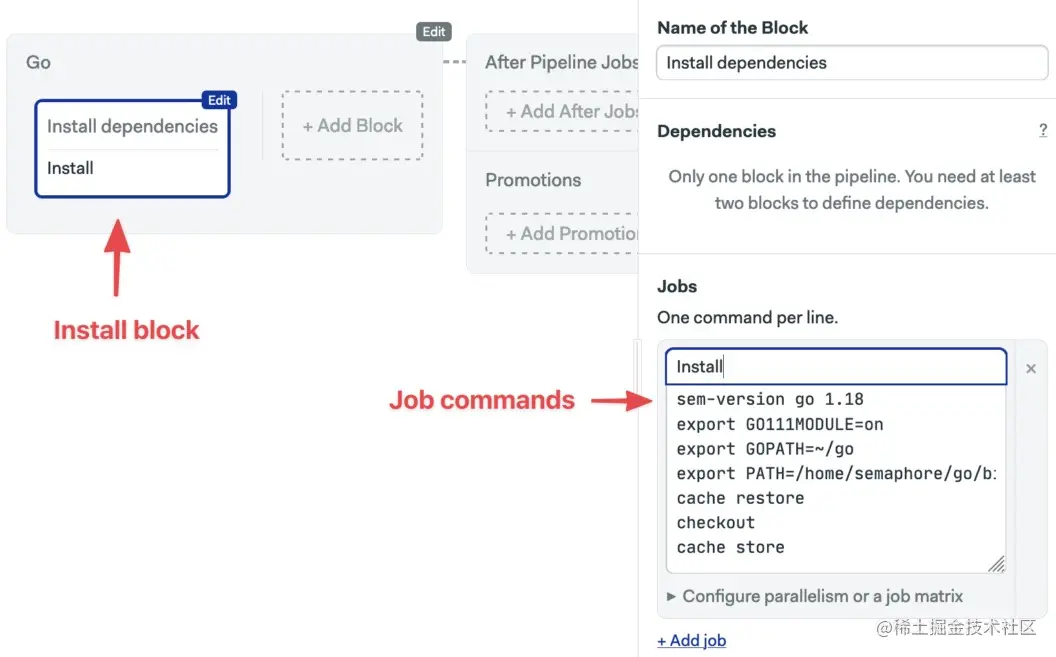 作业第一次运行时,Go会下载依赖项,Semaphore会将其存储在缓存中。在接下来的所有运行中,Semaphore将恢复它们,Go不需要再次下载它们,从而大大加快了运行的速度。