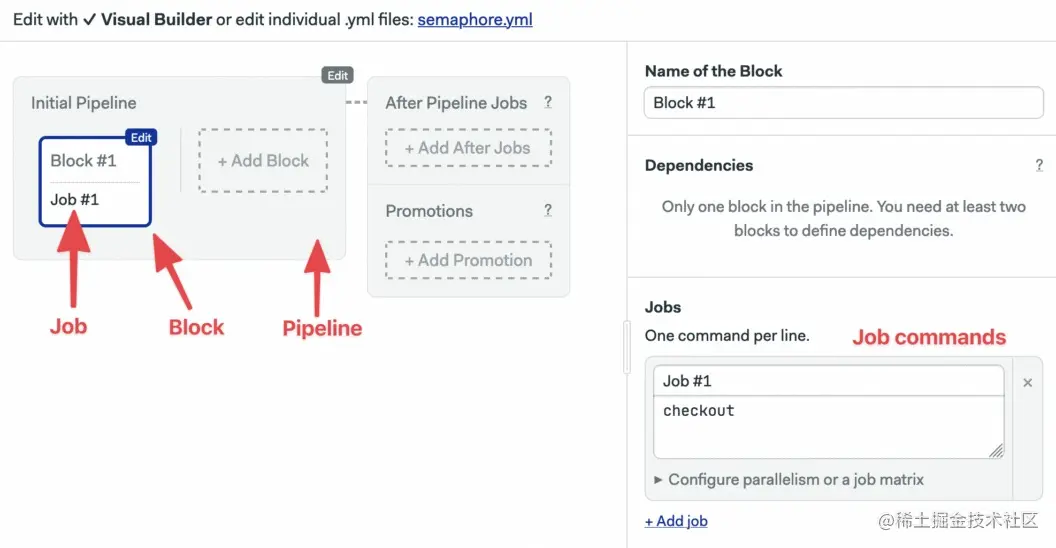 - 区块:区块将可以并行执行的作业分组。一个区块中的作业通常有类似的命令和配置。一旦一个区块中的所有工作完成,下一个区块就开始了。