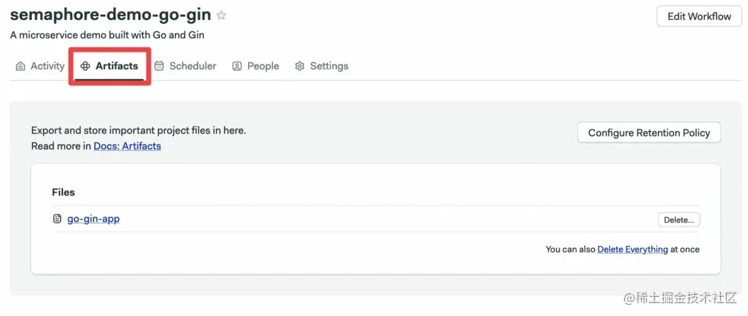 Semaphore有三个独立的工件存储。作业、工作流和项目。欲了解更多信息,请查看工件文档。