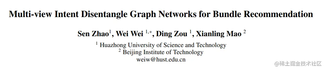 论文标题:Multi-view Intent Disentangle Graph Networks for Bundle Recommendation