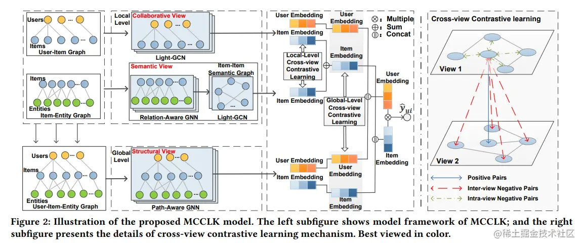 从模型图中可以看出,MCCLK包括三个主要部分视图生成、局部对比学习和全局对比学习。