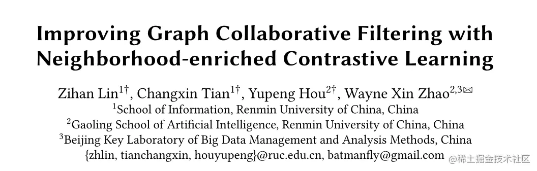 论文标题:Improving Graph Collaborative Filtering with Neighborhood-enriched Contrastive Learning