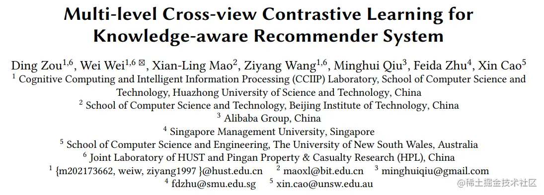 论文标题:Multi-level Cross-view Contrastive Learning for Knowledge-aware Recommender System