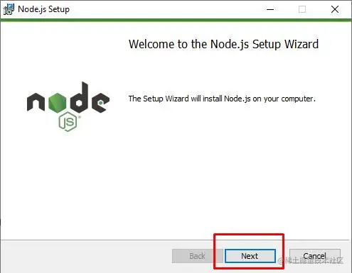 你的Node.js安装程序将开始下载,一旦下载完成,导航到你的下载文件夹,点击Node.js安装程序。继续点击下一步 按钮,直到你的Node.js被成功安装。