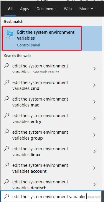 有时,即使成功安装了Node.js,错误也会不断出现;这是因为环境变量没有正确设置。要设置环境变量,只需在Windows 10左下角的搜索栏中搜索编辑系统环境。