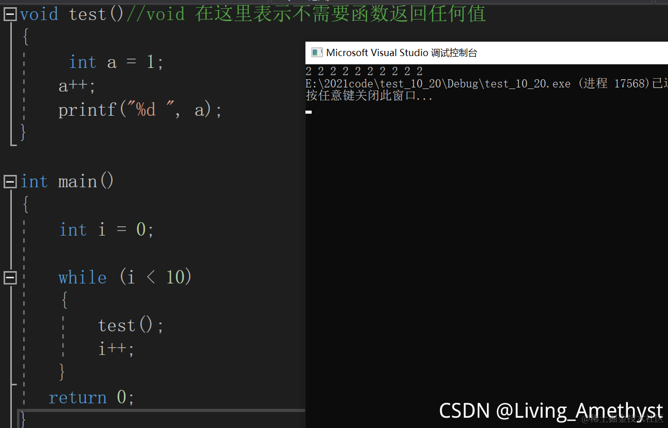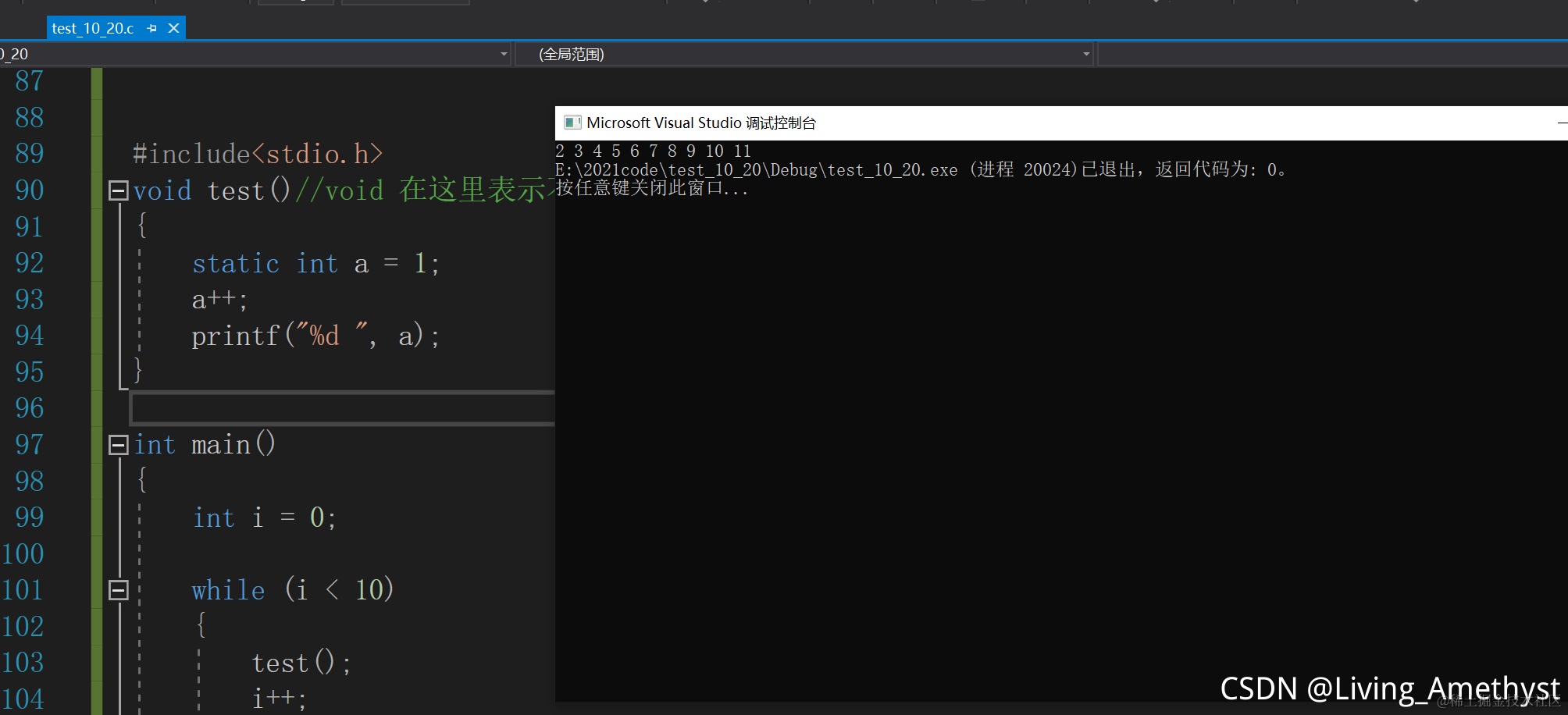 在了解了这个知识后,我们来具体看看static 修饰局部变量吧!我将用代码来介绍: