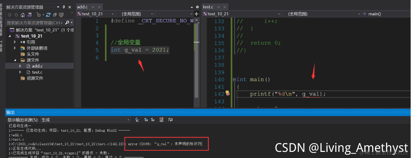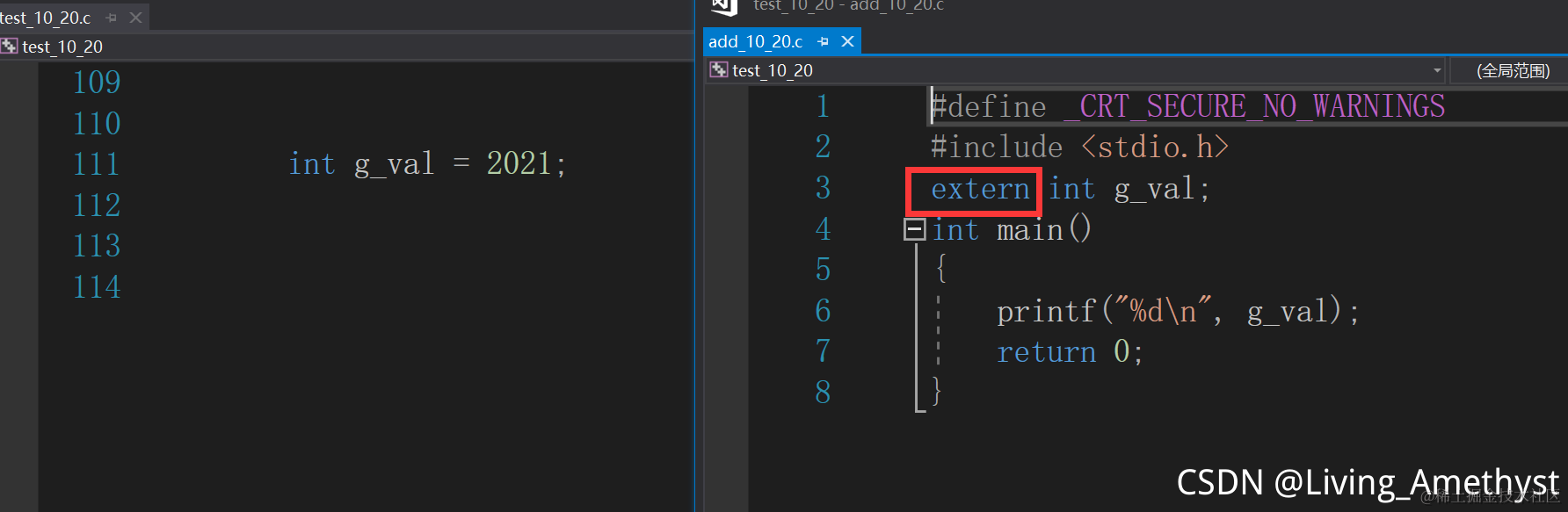 全局变量的外部链接属性: 全局变量不仅能在自己的源文件内使用,还能再其他文件使用