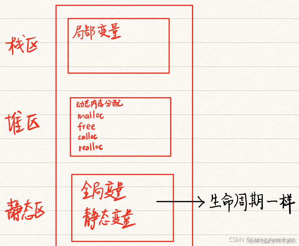 static修饰局部变量时,其实实质上改变的是变量的的存储类型(储)由栈区存储变为静态区存储),从而使得静态的的局部变量即使出了自己的作用域也不会被销毁,其实相当于改变了这个局部变量的生命周期,让静态局部变量出了作用域依然存在,到程序结束,生命周期才结束