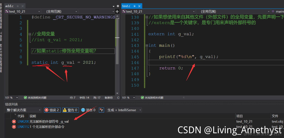 static修饰全局变量时,会将全局变量的外部链接属性变成内部链接属性