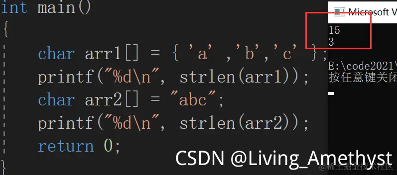 - 关注的是字符中是否含有\0,计算的是\0之前的字符个数