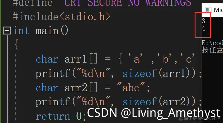并且我们可以知道操作符sizeof是不在乎内存中是否有\0的,只关注空间多少