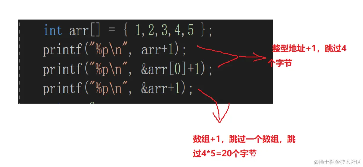 而这里打印的结果也一样,因为:虽然&arr表示的是整个数组的地址,