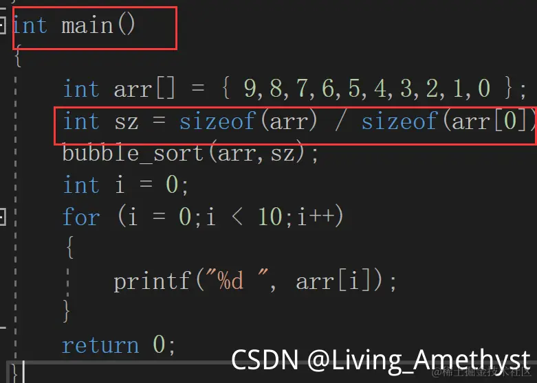 所以如果我们想实现排序的功能应该对代码做一下修改,将sz的计算放在main函数中