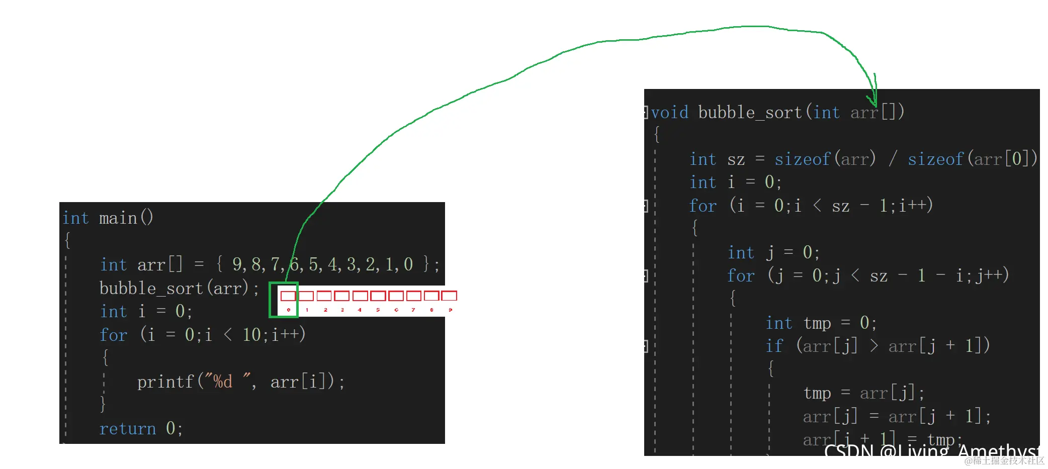 但是这里我们为了说明数组作为函数参数时的一些特点,我们采用函数的形式,完成冒泡排序