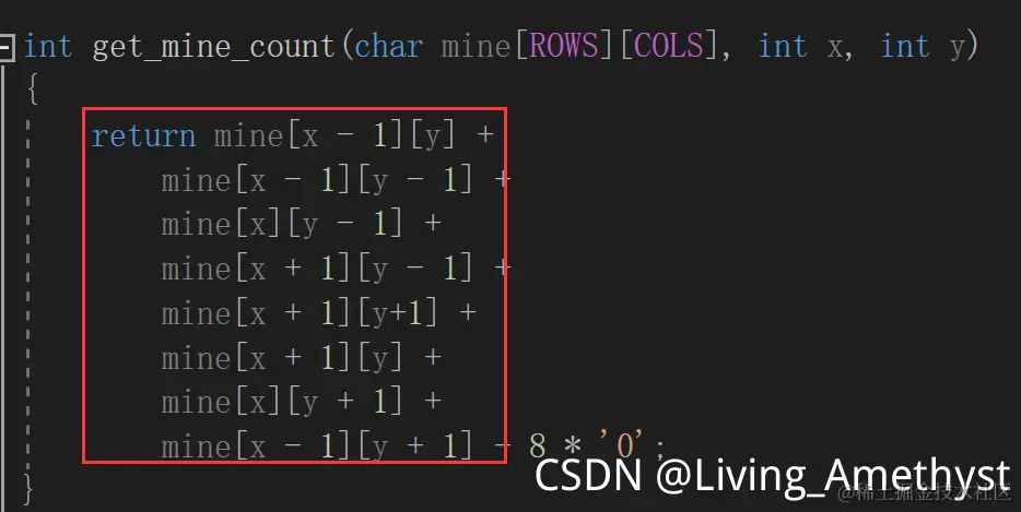 int count = get_mine_count(mine, x, y);//周围雷的个数