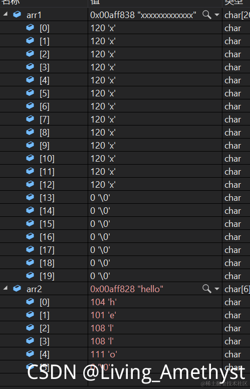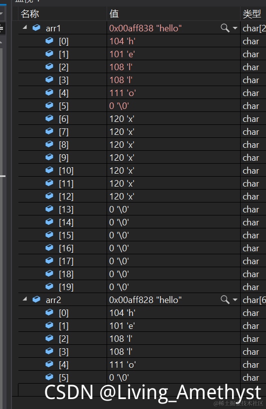 一举两得,既将arr1赋值了hello \0 而且\0结束后就停止了