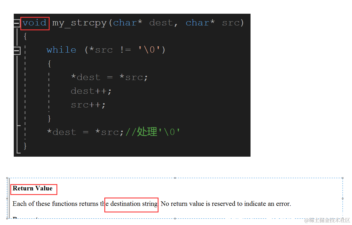 原函数是有返回值的,返回的是目标的指针,而我们的返回类型是void,