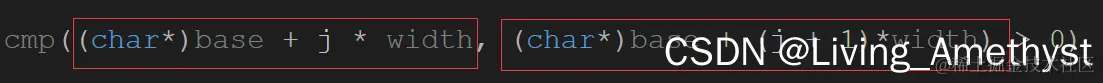 (char*)base 和 (char*)base+width 刚好是跳过了一个元素的字节指向下一个元素