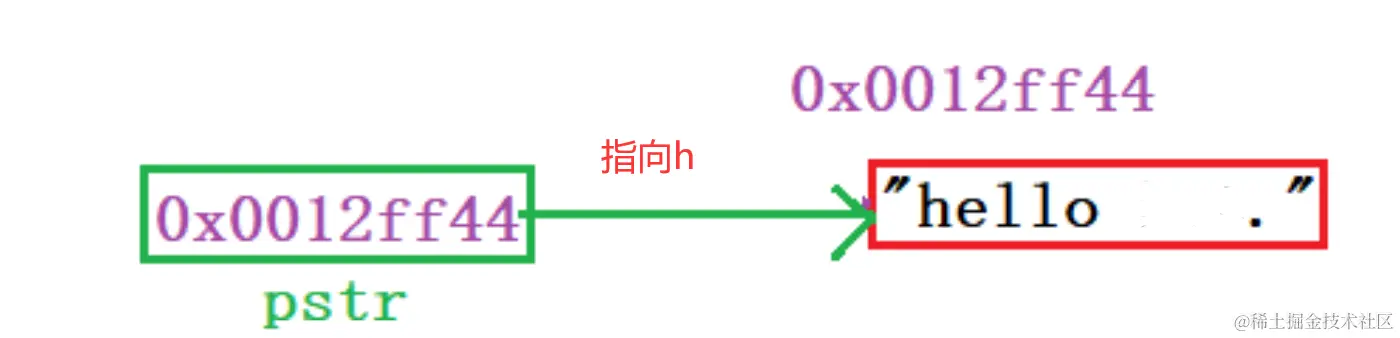 但是本质是把字符串 hello 的首字符h 的地址放到了 pstr里