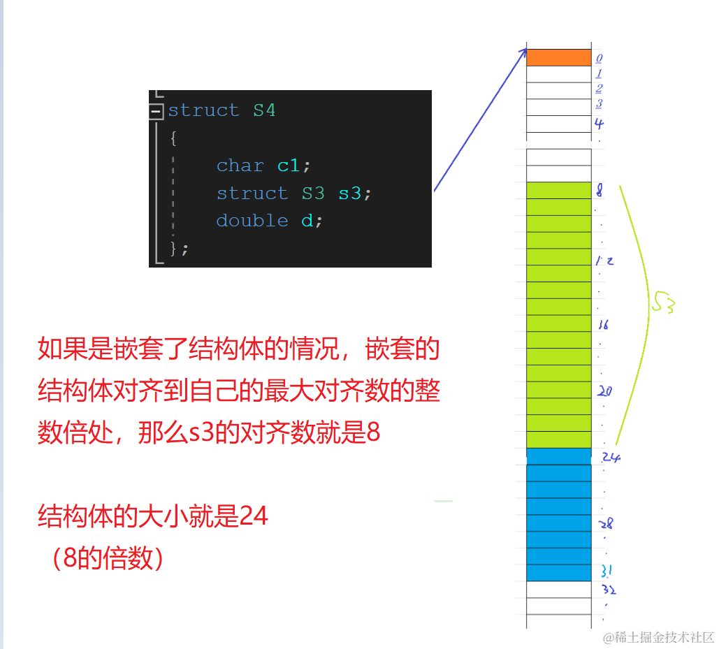 - 当最大成员大小不是最大对齐数的整数倍的时候,就要对齐到最大对齐数的整数倍。