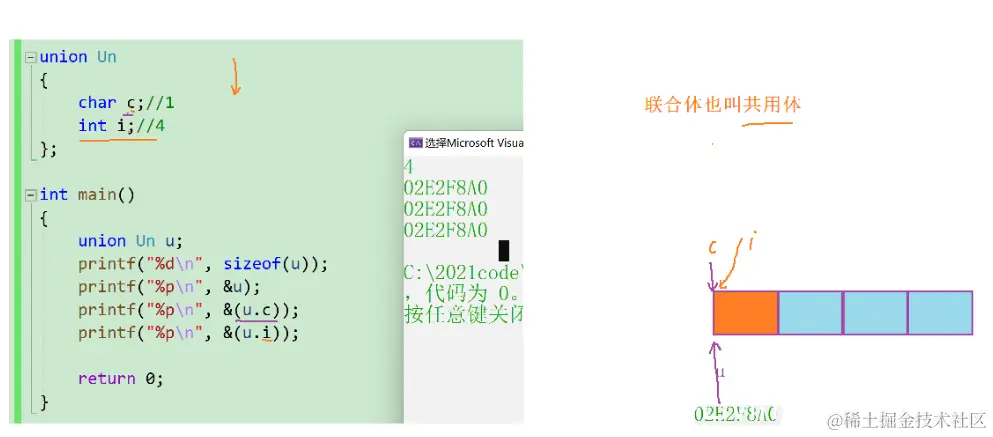 但是,编译器只为联合中的最大的成员分配足够的内存空间。联合的成员在这个空间内彼此覆盖。