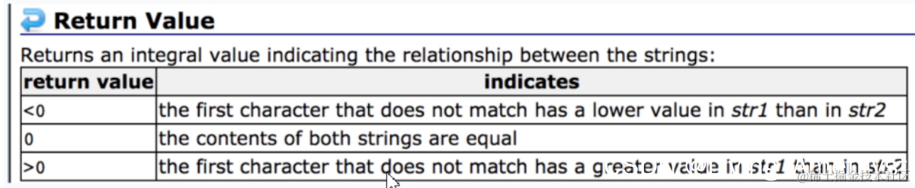 - 第一个字符串小于第二个字符串,则返回小于0的数字