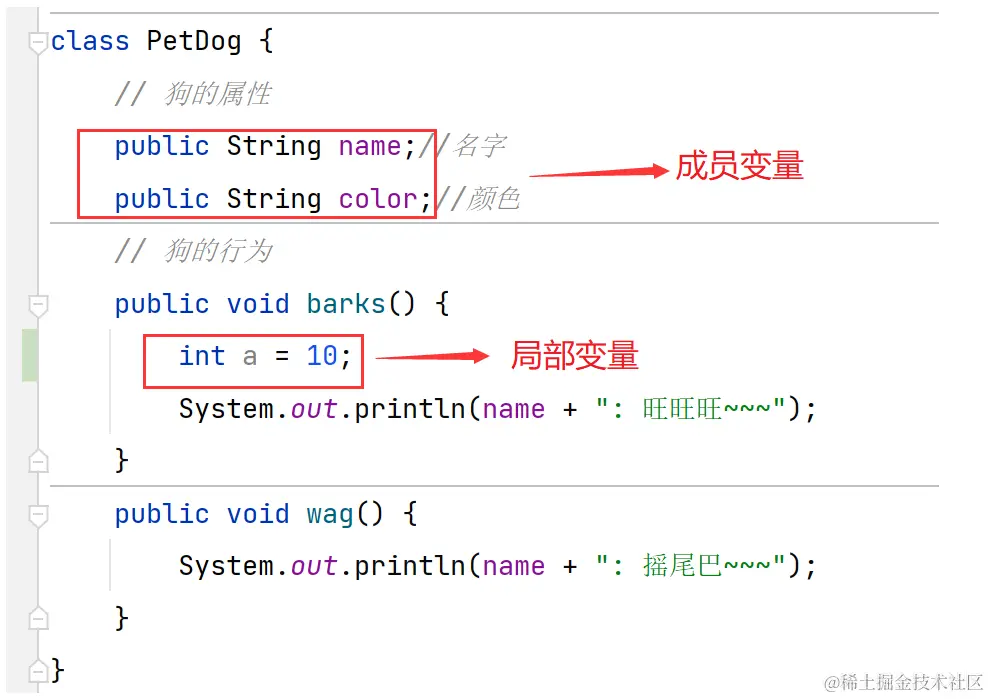 - 此处写的方法不带 static 关键字. 后面会详细解释