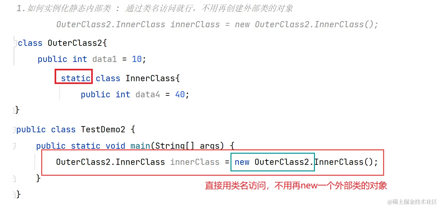 OutClass2.InnerClass innerClass = new OutClass2.InnerClass();